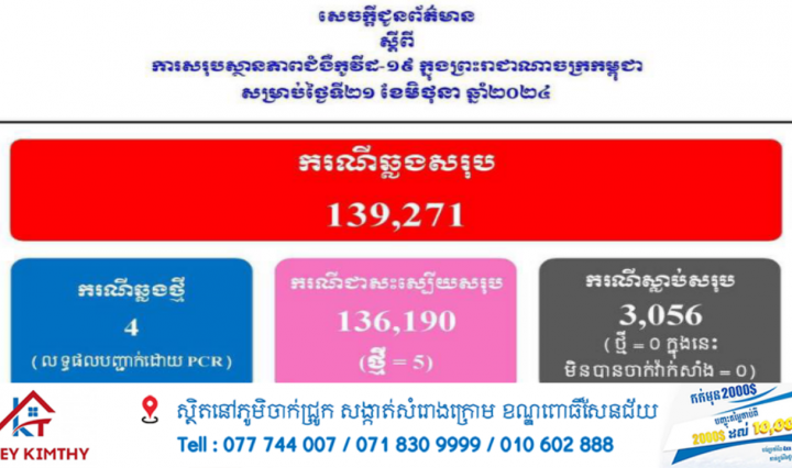ខេត្តកំពង់ស្ពឺ៖ កម្លាំងនគរបាលស្រុកបសេដ្ឋ នៃស្នងការដ្ឋាននគរបាលខេត្តកំពង់ស្ពឺ នៅព្រឹកថៃ្ងទី២២ មិថុនា ២០២៤ បានឃាត់ខ្លួនចោរស្រីជេីងឆេីតអស់លក្ខណ៍ម្នាក់ ដែលជាមុខសញ្ញាទម្លាក់ដុំប្រាក់ដូរយកមាសសុទ្ធ នៅចំណុចផ្សាស្លាបលែង ស្រុកបសេដ្ឋ … អានបន្ថែម ចោរស្រីជេីងឆេីតអស់លក្ខណ៍! មុខសញ្ញាទម្លាក់ដុំប្រាក់ដូរយកមាសសុទ្ធត្រូវជាប់អន្ទាក់នគរបាលស្រុកបសេដ្ឋ ខេត្ដកំពង់ស្ពឺ ដូច្នេះសូមបងប្អូនប្រជាពលរដ្ឋកុំចាញ់ល្បិច