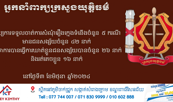 ភ្នំពេញ ៖ លោក ហេង សួរ រដ្ឋមន្ត្រីក្រសួងការងារ និងបណ្ដុះបណ្ដាលវិជ្ជាជីវៈ និងជាប្រធានគណ:កម្មាធិការជាតិប្រឆាំងពលកម្មកុមារ ព្រឹកថ្ងៃអង្គារ ទី៤ … អានបន្ថែម លោក ហេង សួរ ជំរុញឱ្យគ្រប់ភាគីពាក់ព័ន្ធចូលរួមបង្ការកុំឱ្យមានការកេងប្រវ័ញ្ចលើកុមារ