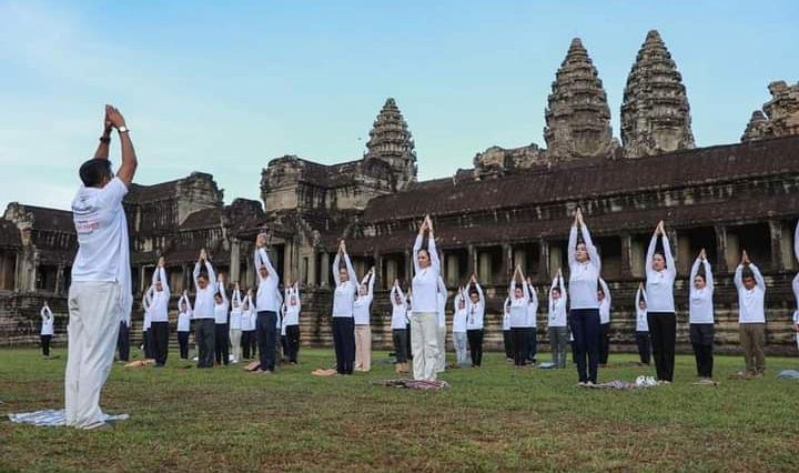 លោកជំទាវបណ្ឌិត ពេជ ចន្ទមុន្នី ហ៊ុនម៉ាណែត អញ្ជើញចូលរួមអនុវត្តយោគៈ និងសមាធិ នៅបរិវេណប្រាសាទអង្គរវត្ត