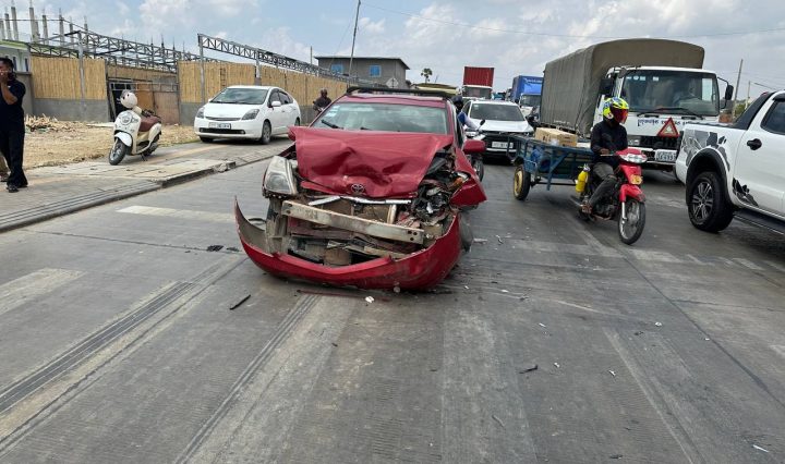 បុរសម្នាក់ជិះម៉ូតូ១គ្រឿងបុករថយន្តបើកឆ្លងផ្លូវបណ្តាលឱ្យដាច់ ក ជើងជាប់និងកាងដែករថយន្តរងរបួសធ្ងន់