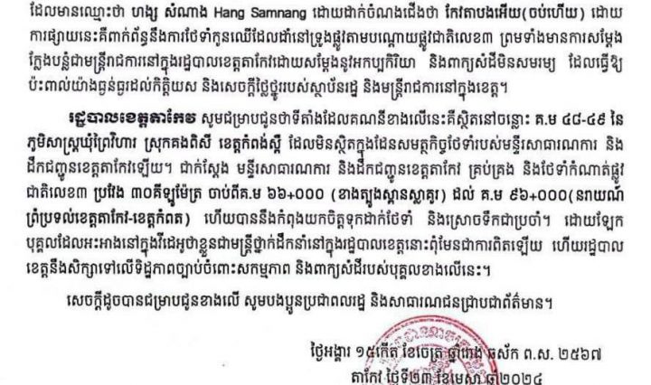 ភ្នំពេញ ៖ ដើម្បីជំរុញនូវយុទ្ធនាការ «ទស្សនាសៀមរាប ឆ្នាំ២០២៤» ក៏ដូចជាអបអរសាទរ «ឆ្នាំនៃការផ្លាស់ប្តូរប្រជាជន និងប្រជាជន កម្ពុជា-ចិន ២០២៤» … អានបន្ថែម សម្តេចធិបតី ហ៊ុន ម៉ាណែត ៖ ដើម្បីជំរុញនូវយុទ្ធនាការ «ទស្សនាសៀមរាប ឆ្នាំ២០២៤»