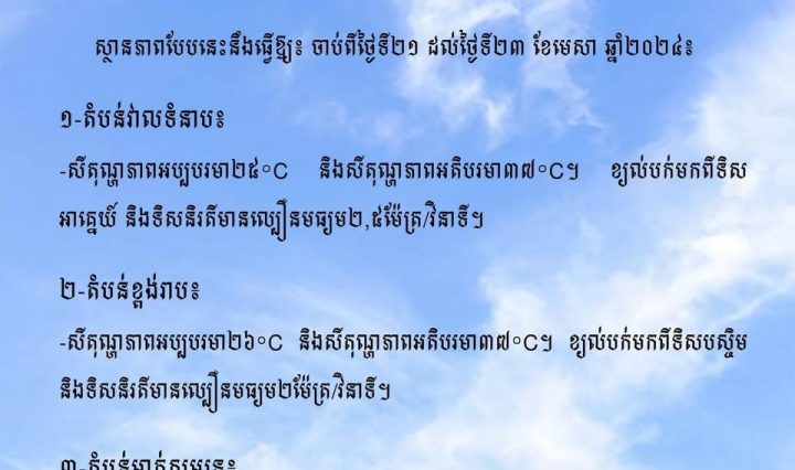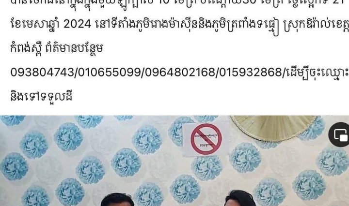 ខេត្តបាត់ដំបង៖ នៅថ្ងៃទី២០ ខែមេសា ឆ្នាំ២០២៤ ម្សិលមុិញ ឯកឧត្តមនាយឧត្តមសេនីយ៍ ម៉ៅ សុផាន់ អគ្គមេបញ្ជាការរង នៃកងយោធពលខេមរភូមិន្ទ … អានបន្ថែម មេបញ្ជាការកងទ័ពជើងគោក ចូលរួមគោរពវិញ្ញាណក្ខន្ធ និងបំពាក់ឋានន្តរស័ក្តិថ្នាក់ឧត្តមសេនីយ៍ទោ ជូនសពឯកឧត្តម ឧត្តមសេនីយ៍ត្រី ហួម ខ្វែក