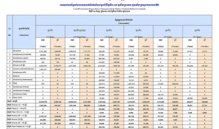 ក្រសួងសុខាភិបាល ៖ លទ្ធផលចាក់វ៉ាក់សាំងធៀបនឹងចំនួនប្រជាជនសរុប ១៦លាន នាក់ មាន ៩៥,៦៦%