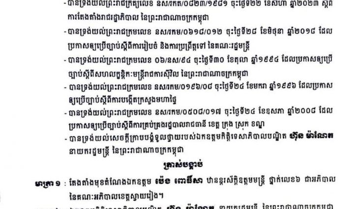 ភ្នំពេញ៖ លោកកិត្តិទេសាភិបាលបណ្ឌិត ហ៊ុន ម៉ាណែត នាយករដ្ឋមន្ត្រីនៃព្រះរាជាណាចក្រកម្ពុជា នៅព្រឹកថ្ងៃទី២៤ ខែសីហា ឆ្នាំ២០២៣នេះ បានដឹកនាំកិច្ចប្រជុំពេញអង្គគណៈរដ្ឋមន្ត្រីលើកដំបូង នីតិកាលទី៧ … អានបន្ថែម ព្រឹកនេះ! លោកកិត្តិទេសាភិបាលបណ្ឌិត ហ៊ុន ម៉ាណែត ដឹកនាំកិច្ចប្រជុំពេញអង្គគណៈរដ្ឋមន្ត្រីលើកដំបូង នីតិកាលទី៧ នៃរដ្ឋសភា តាមរយៈកម្មវិធី ZOOM