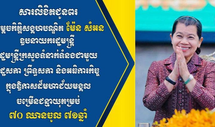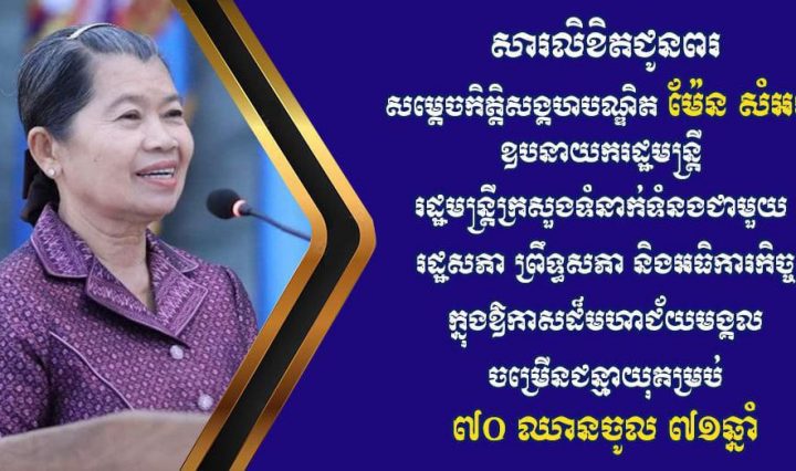 ឧត្តមសេនីយ៍ឯក ហួត ឈាងអន ផ្ញើសារគោរពជូនពរ សម្តេចកិត្តិសង្គហបណ្ឌិត ម៉ែន សំអន ក្នុងឱកាសចម្រើនជន្មាយុគម្រប់ ៧០ ឈានចូល ៧១ឆ្នាំ
