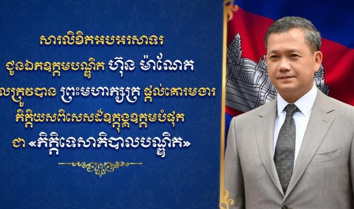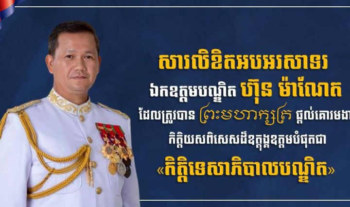 ឧត្តមសេនីយ៍ទោ ស ថេង សូមអបអរសាទរជូនឯកឧត្តមបណ្ឌិត ហ៊ុន ម៉ាណែត ដែលត្រូវបានព្រះមហាក្សត្រផ្តល់គោរមងារ កិត្តិយសពិសេសដ៏ឧត្តុង្គឧត្តមបំផុត ជា «កិត្តិទេសាភិបាលបណ្ឌិត»