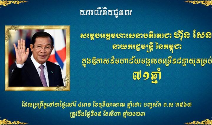 ឯកឧត្តម ឃួង ស្រេង និងឯកឧត្ដម ម៉ប់ សារិន ផ្ញើសារលិខិតគោរពជូនពរ សម្ដេចតេជោ ហ៊ុន សែន ក្នុងឱកាសចម្រើនជន្មាយុគម្រប់ ៧១ឆ្នាំ