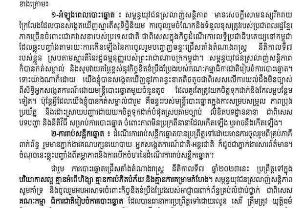 ភ្នំពេញ ៖ បន្ទាប់ពីប្រធានាធិបតីចិន ផ្ញើសារអបអរសាទរជូនសម្តេចតេជោ ហ៊ុន សែន នាយករដ្ឋមន្រ្តី នៃកម្ពុជា ក្នុងឱកាសទទួលបានជ័យជំនះជាថ្មីម្តងទៀតរបស់ គណបក្សប្រជាជនកម្ពុជា … អានបន្ថែម នាយករដ្ឋមន្ត្រីចិន ផ្ញើសារជូនសម្តេចតេជោ ហ៊ុន សែន ដោយចូលរួមអបអរសាទរចំពោះជោគជ័យ ក្នុងការបោះឆ្នោតជាតិជ្រើសតាំងតំណាងរាស្រ្ត អាណត្តិទី៧ ដែលនាំមុខដោយគណបក្សប្រជាជនកម្ពុជា !