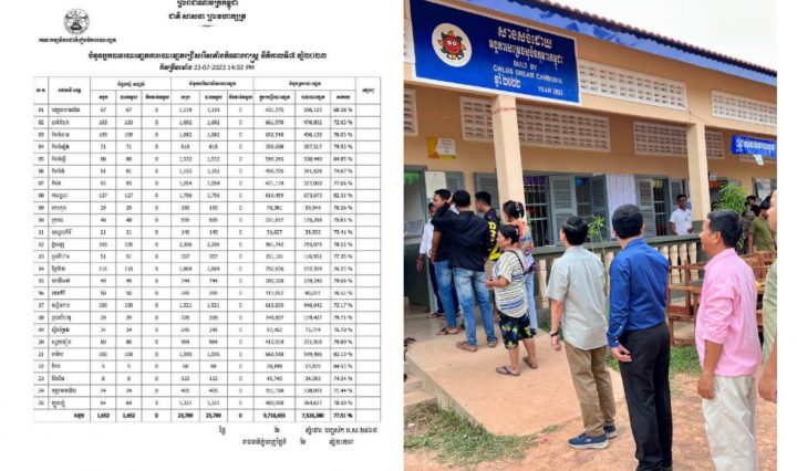 ភ្នំពេញ៖ គិតត្រឹមម៉ោង២៖០២នាទីរសៀលថ្ងៃទី២៣ ខែកក្កដា ឆ្នាំ២០២៣នេះ មានប្រជាពលរដ្ឋខ្មែរចំនួន ៧ ៥២៦ ៣៨០នាក់ ស្មើនឹង ៧៧,៥១ភាគរយហើយ … អានបន្ថែម Update ៖ គិតត្រឹមម៉ោង២៖០២នាទីរសៀលថ្ងៃទី២៣ ខែកក្កដា ឆ្នាំ២០២៣នេះ មានប្រជាពលរដ្ឋខ្មែរចំនួន ៧៧,៥១ភាគរយហើយ បានអញ្ជើញទៅបោះឆ្នោតជាតិជ្រើសតាំងតំណាងរាស្រ្ត អាណត្តិទី៧