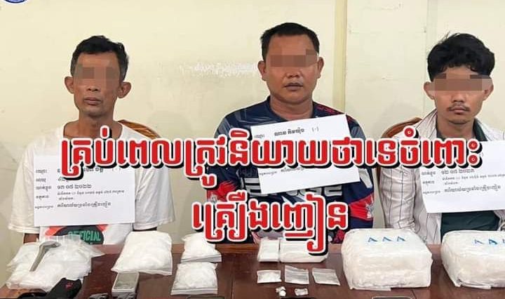 នគរបាលឃាត់ខ្លួនជនសង្ស័យ៣នាក់និងគ្រឿងញៀនជាង២គ.ក្រនៅស្រុកសង្កែនិងក្រុងប៉ោយប៉ែត