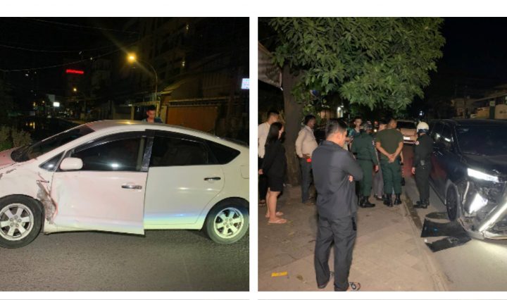រថយន្តស៊េរីទំនើបGreat Wall ពាក់ផ្លាកលេខខេមរភូមិន្ទ បុករថយន្ត Prius នៅផ្លូវបំបែកជាបួនរងការខូចខាតយ៉ាងដំណំ