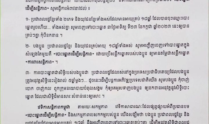 លោកកិត្តិសង្គហបណ្ឌិត គន់ គីម សូមឱ្យប្រជាពលរដ្ឋបោះឆ្នោតជូនគណៈបក្សប្រជាជនកម្ពុជាលេខរៀងទី១៨ ដើម្បីបន្តរក្សាសន្តិភាព