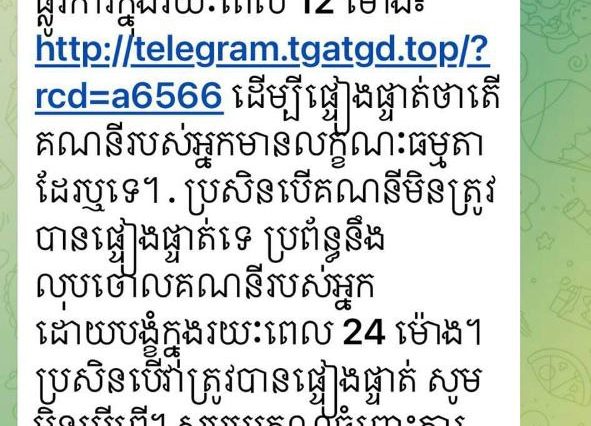 ភ្នំពេញ :សូមប្រយ័ត្ន! ជាពិសេសក្នុងពេលយុទ្ធនាការឃោសនាបោះឆ្នោត គឺក្រុមចោរ Hackers កំពុងព្យាយាមសកម្មភាពបំផ្លាញនិងបោកអ្នកប្រើប្រាស់ Telegram! នេះជាការលើកឡើងពី លោក ដួង … អានបន្ថែម លោក ដួង តារា : ក្រុមចោរ (Hacker) កំពុងរកវិធីលួចយកតេឡេក្រាមបងប្អូន! – សូមដាក់2-Step Verification 🔐