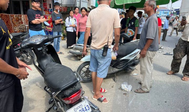 ម៉ូតូ២គ្រឿងបុកគ្នាបណ្តលឲ្យភាគីម្ខាងរបួសបាក់ភ្លៅ